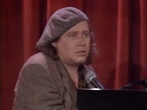 Herec Sam Kinison hraje na klavír a zpívá písničku, zvláštní láska. Zdroj: standuparchive2.blogspot.com