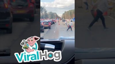 Motoristé odstraňují kužely z jízdního pruhu a nechají projít sanitkou