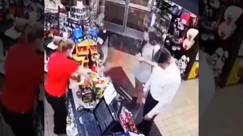 V úložišti, láhev Coca Coly, která vypadla z rukou zákazníka, je zastřelen a poškrábán mužem a ženou, kteří čekali u pokladny. Naštěstí, krabička měla ochranné sklo, a pokladník unikl určité nehodě.