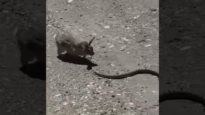 Statečný králík je umístí s hadem blížícím se k jeho hnízdu. S překvapivě rychlými pohyby jako boxer, králík se vyhýbá útokům hadů a poté ho zahání.