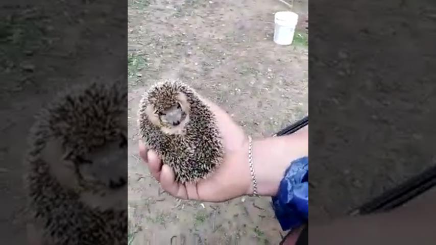 Navinutý s trny na mužské ruce, malý ježek uvolní svoji obranu, aby si mohl pochutnat.