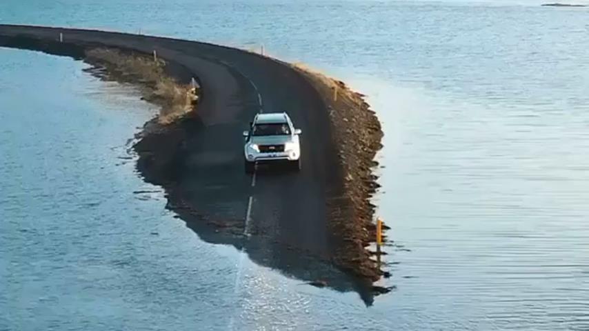 Po tání ledovců stoupající teplotou na Islandu, některé venkovské silnice jsou téměř úplně zaplaveny.