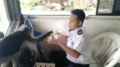 V Malajsii v Langkawi, opice při jídle ukradne sendvič ochranky. Strážný byl abstraktní, protože místo bylo kvůli koronaviru prázdné. Když uviděl skupinu opic, strážný se rozhodl natočit toto vtipné video. Měl nápad přilákat je sendvičem. Jeden z nich se přiblížil, strážce předstíral, že se bojí, a dal jí sendvič předstírat, že se stal obětí loupeže.