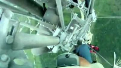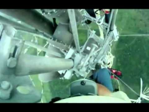 Dva technici lézt do jedné obrovské antény pro změnu výstražná kontrolka na.