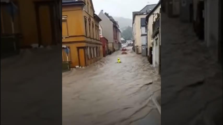 Lidé zachrání hasiče před utonutím, během katastrofických povodní v Německu ve středu 14. července 2021.