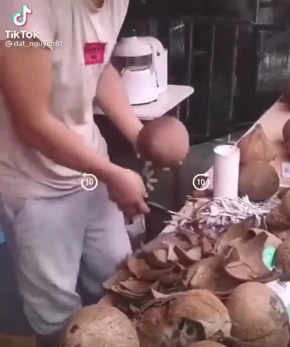Příprava kokosového mléka (pouliční jídlo)