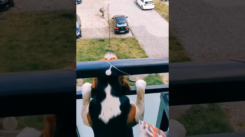 Pes vidí vojáka svého majitele, jak se po chvíli vrací, a vítá ho s přehnanou radostí.