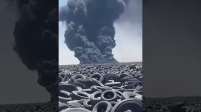 Ve městě Sulaibiya v Kuvajtu nedávno vypukl požár na největší skládce pneumatik na světě, což je také vidět ze satelitů. Na hřbitově pneumatik, Odhaduje se, že existuje více než 7 milionů pneumatik.