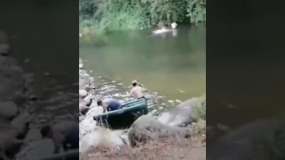 Muž se legračně ponoří do jezera, počínaje velkým skokem. Bohužel nemohl létat jako Superman.