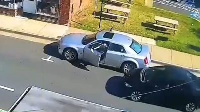 Žena ve Spojených státech vystoupí z auta, aniž by se podívala do zrcadla. Projíždějící vozidlo se při otevírání srazí s jeho dveřmi.
