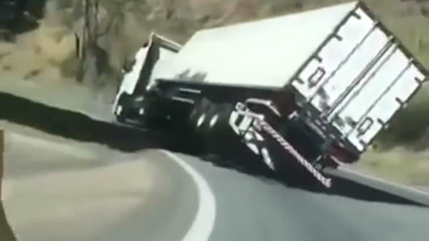 Na ulici v Brazílii, hrubá chyba řidiče povede k převrácení jeho kamionu, protože se pohyboval vysokou rychlostí v ostré zatáčce.