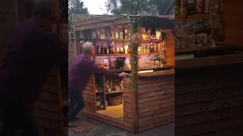 Muž si postavil vlastní skládací tyč, na zahradě svého domu.