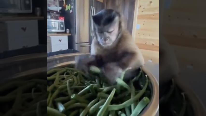 Cappuccino pomáhá při vaření, lámání fazolí před vložením do hrnce. Své práci se velmi věnuje.