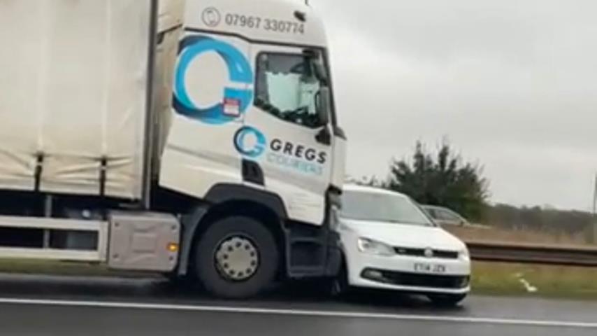 V úterý 19. října 2021 ráno na dálnici M1 v Anglii, kamion táhl Volkswagen Polo stovky metrů, aniž by si řidič kamionu uvědomil, co se stalo. Vůz údajně srazil kamion při změně jízdního pruhu. Vyžádal si zásah dalších řidičů, kteří signalizovali řidiči kamionu, dokud se nezastaví. Řidič vozu, který byl ve vozidle sám, není zraněná.