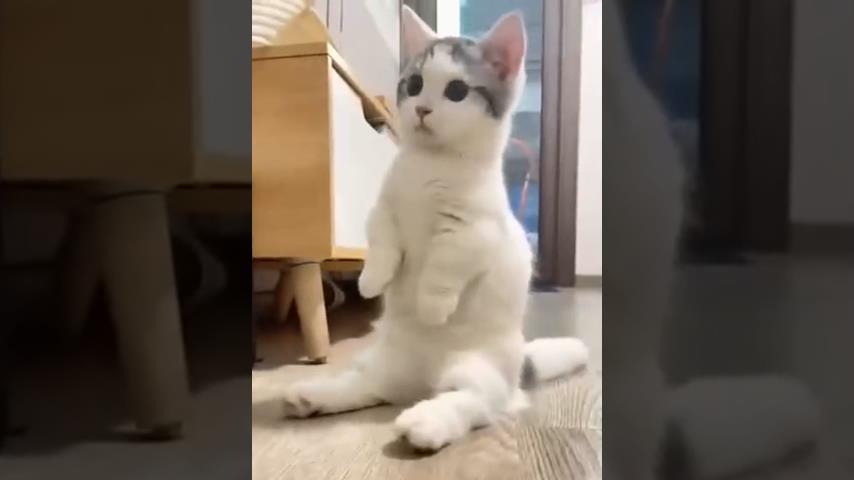 Kotě hraje jako pes. Stojí na obou nohou a čeká, až jí její majitel hodí předmět, přivést to zpět.
