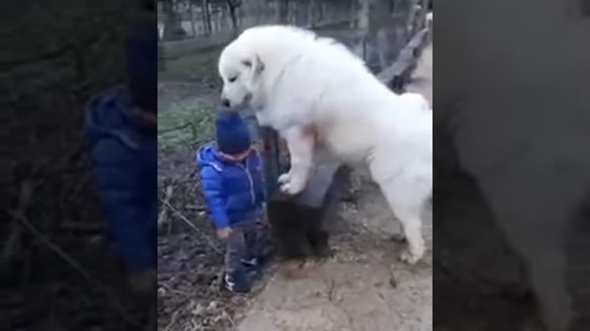 Maremmansko-abruzzský ovčák, hlídá malého chlapce a nepustí ho z domu.