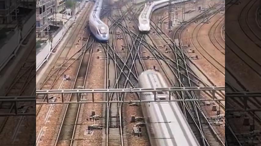 Zdá se, že tři vlaky míří ke srážce na železniční síti, ale na poslední chvíli změní směr.