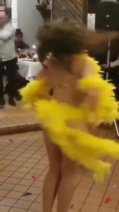 Mladý chlapec se snaží projít mezi dvěma tanečníky.
