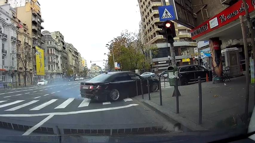 BMW při policejní honičce ve vysoké rychlosti nabouralo do semaforu, v ulicích Bukurešti v Rumunsku. Řidič, který byl pod vlivem alkoholu a kokainu, přežil.