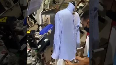 Firemní stroj Sankoša, který dokonale vyžehlí košili během pár sekund.