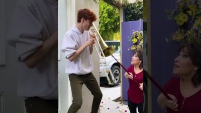 Mladý muž se baví přidáváním zvukových efektů do každodenních povinností své matky hraním na pozoun. Video režírované Peetem Montzingem.