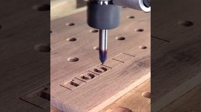 CNC router Shapeoko 4 vytváří logo na dřevě, který se následně naplní epoxidovou pryskyřicí.