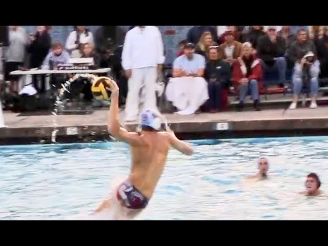 Během zápasu vodního póla mezi SDA a Carpinteria High Schools v Kalifornii, dva hráči budou spolupracovat na působivém, ale také vtipném gólu. Jeden bude skákat vysoko na zádech druhého, kdo je ponořený v bazénu.