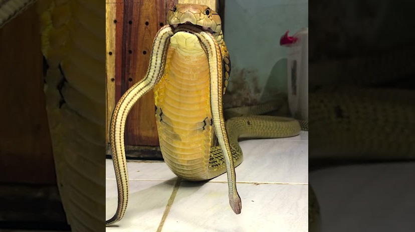 jak o tom svědčí, královská kobra umí řvát. Královské kobry jsou také kanibalští hadi, známý pro svůj zvyk požírat jiné hady, dokonce i jejich podobní.