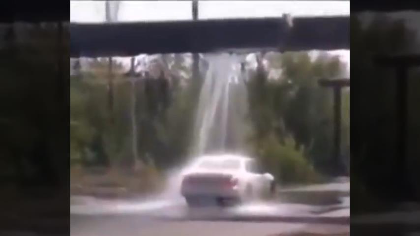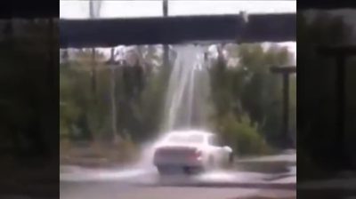 Prasklina ve vodovodním potrubí nad silnicí tlačí vodu dolů, a mnoho řidičů se schválně pod vodou umývá zdarma.