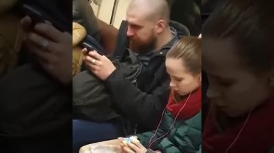 V moskevského metra, žena těžko vyřeší Rubikovu kostku a požádá svého přítele o pomoc.
