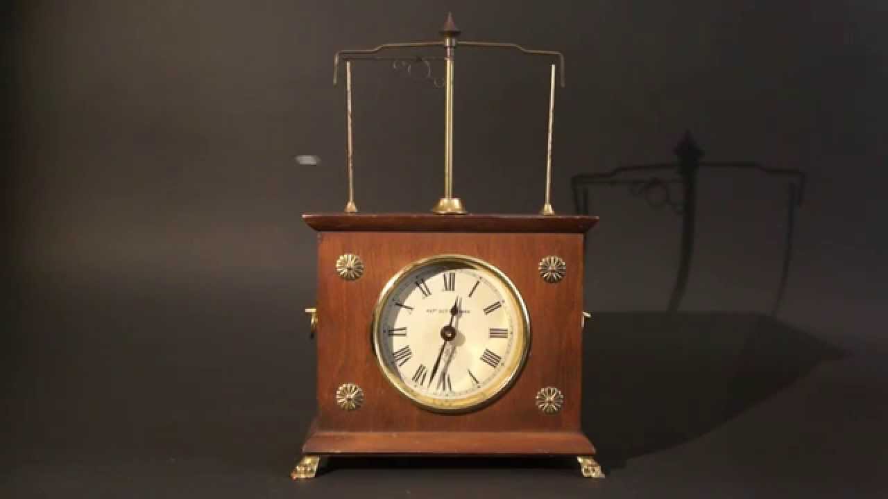 „Flying Pendulum Clock“ vynalezl Alder Christian Clausen v Minneapolis, Minnesota v roce 1883.. Vyrobeno společností New Haven Clock Company pod názvem Jerome & Co. v letech 1884-1885. Toto video hodinky bylo vyrobeno v roce 1959.