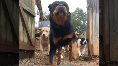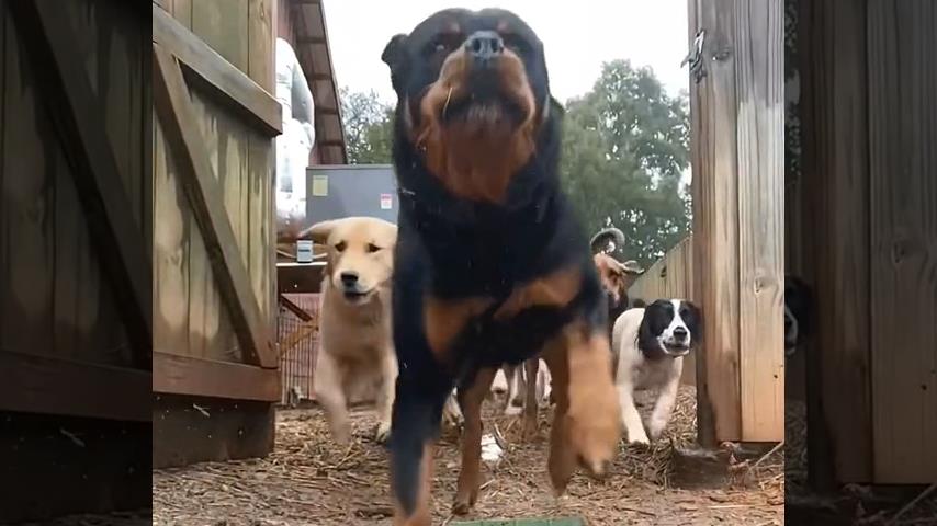 Kamera umístěná na zemi zaznamenává okamžik vypuštění skupiny psů, a začnou utíkat k louce a v pozadí hraje hudba Wagnerovy „Ride of the Valkyries“.