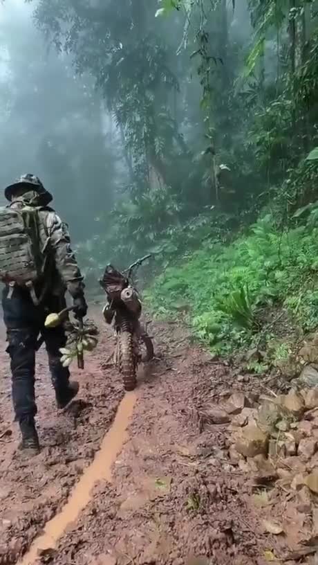 Skutečný lesák se vrací domů se svým trsem banánů a svými mazlíčky veverkami…