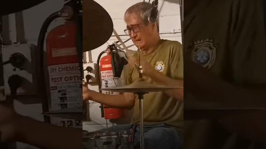 Bubeník se usilovně snaží následovat opilého zpěváka kapely.