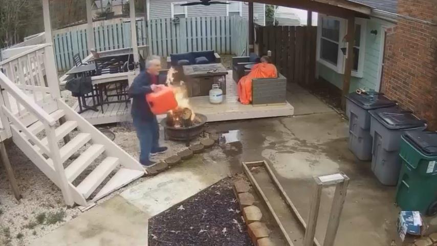 Nemotorný muž se neúspěšně pokouší zapálit gril pomocí benzínu.