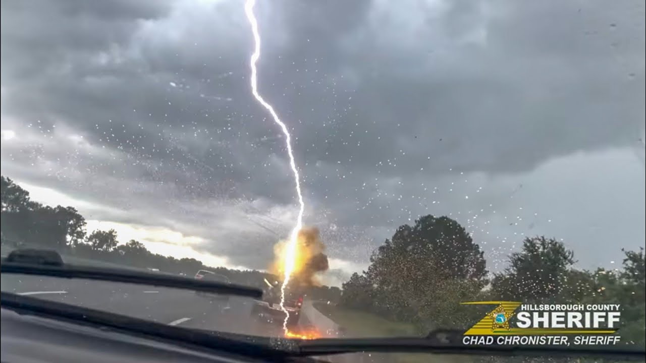 1. července 2022 v Hillsborough County na Floridě, policista zaznamenal ze svého hlídkového vozu velkolepý úder blesku do vozu před ním.