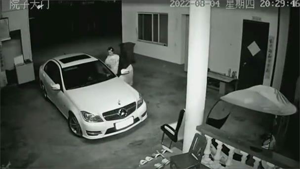 Žena v Číně se snaží dostat své auto ze svého dvorku, kde zaparkoval.