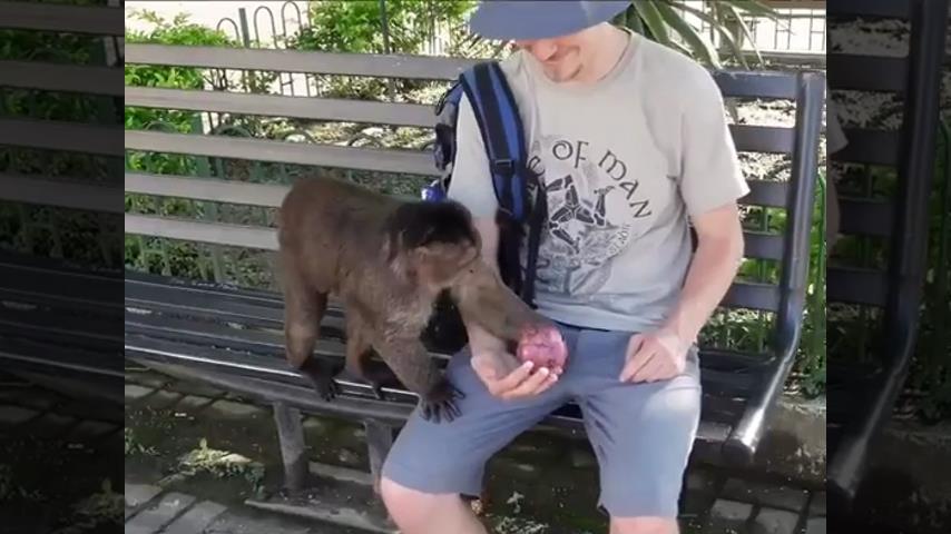V parku v Thajsku, muž přitahuje opici tím, že drží cibuli. Opice to poznají tak, že si cibuli natírají na těle, odpuzuje drobný hmyz. Tak, jeden po druhém, Sedm opic přilétlo muži na klín, aby se o sebe otíraly a ucítily cibuli.