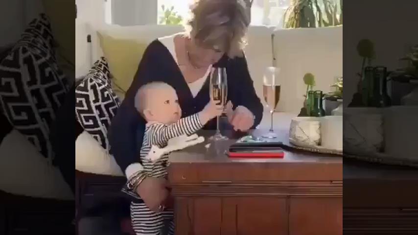 V náručí své matky, dítě popadne sklenici šampaňského a srazí ji ze stolu. Jeho matka chytí sklenici, než spadne, ale ona pustí dítě z jejích rukou.
