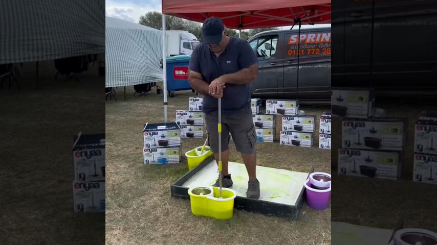 Prodejce 'kouzelného' mopu v Anglii, ví, jak prodat svůj produkt. Pro každého, kdo má zájem, mop se jmenuje Mít Spin Mop.