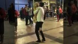 Čtyři děti se neustále objímají a ukazují si vzájemnou lásku. Scéna vypadá tak, že se čtyři opilí přátelé zdraví před odchodem z baru.