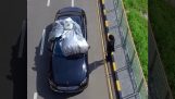 Stahovací střešní stan tzv Redtail RT 90. Uvnitř jsou baterie a ventilátory, zatímco na střeše jsou solární panely.