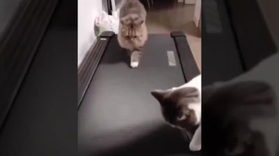 Kočka poprvé prozkoumává tělocvičnu, a chápe, jak to funguje.