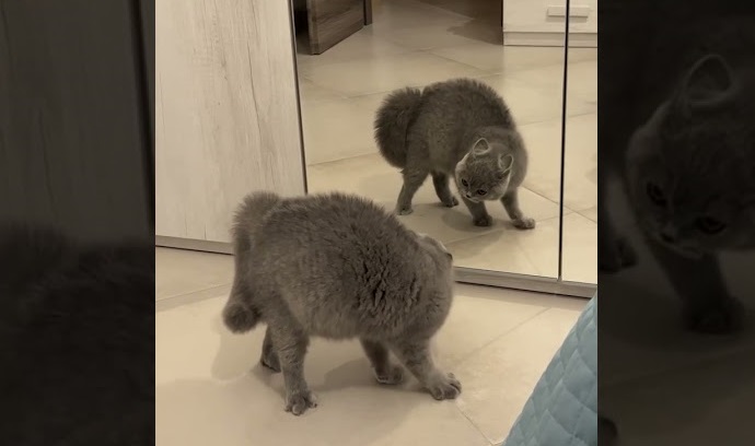 Kočka se poprvé setkává se svým odrazem v zrcadle.