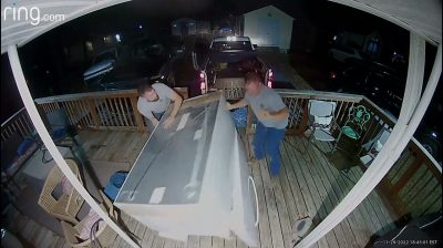 Nehoda při nakládání ledničky na nákladní auto, dvěma muži. K incidentu došlo 29. listopadu 2022 v Jižní Karolíně v USA.