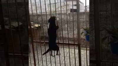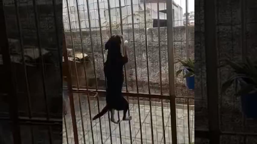 Pes dokáže přelézt vysokou bránu.