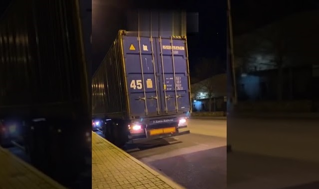V Cabanillas del Campo, Španělsko, dva řidiči kamionů souhlasí s tím, že zaparkují svá vozidla tak, aby dveře kontejneru byly proti sobě, aby jejich zboží nemohlo být ukradeno.