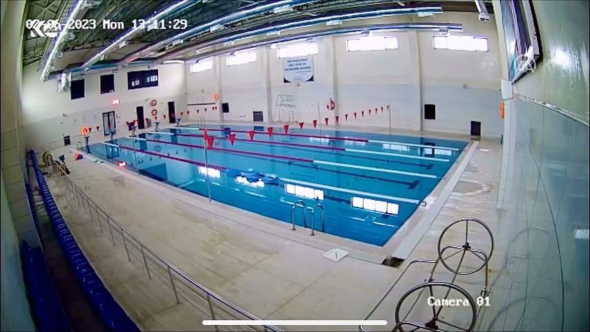 Bezpečnostní kamera z bazénu na koupališti v Gaziantepu v Turecku, zaznamenal, co se stalo v době 7. zemětřesení,5 Richter.