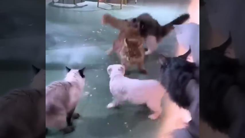 Dvě kočky začnou divoký boj, než je přijde kočka oddělit a vynutit si pořádek.