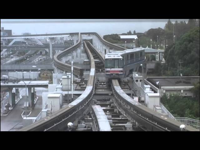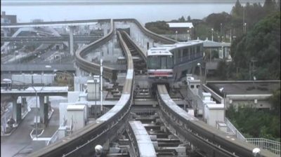 Jednokolejné vlaky, je železnice, ve které se trať skládá z jedné kolejnice nebo nosníku. Zde vidíme, jak fungují jednokolejné vlaky ve stanici Bampakukinenkoen, v japonské Ósace.